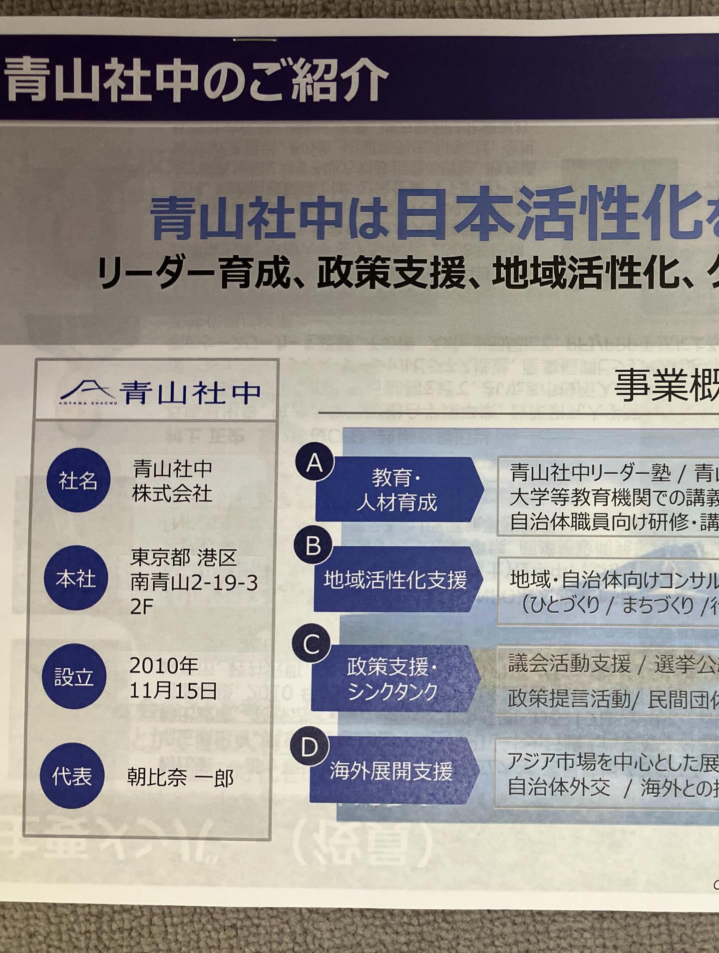 全国首長セミナーの講師として、お話を聞かせていただいた青山社中の朝比奈代表。