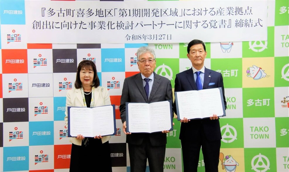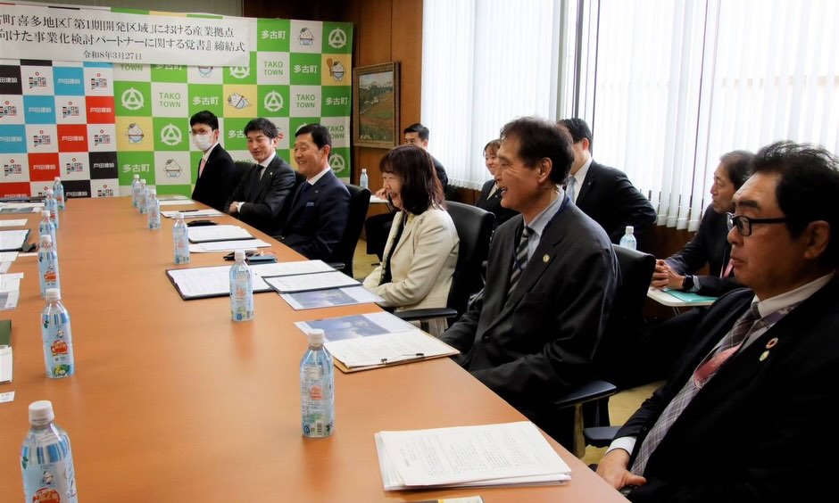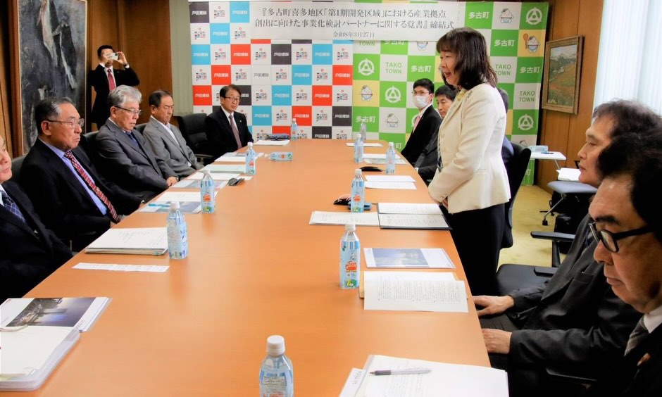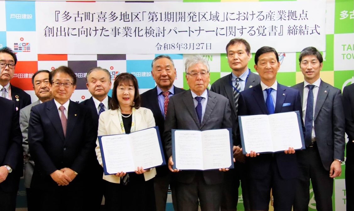 圏央道、多古IC周辺喜多地区「第1期開発区域」における産業拠点創出に向けた事業化検討パートナーに関する覚書を、まちづくり協議会(地権者等)とともに戸田建設様と締結しました。